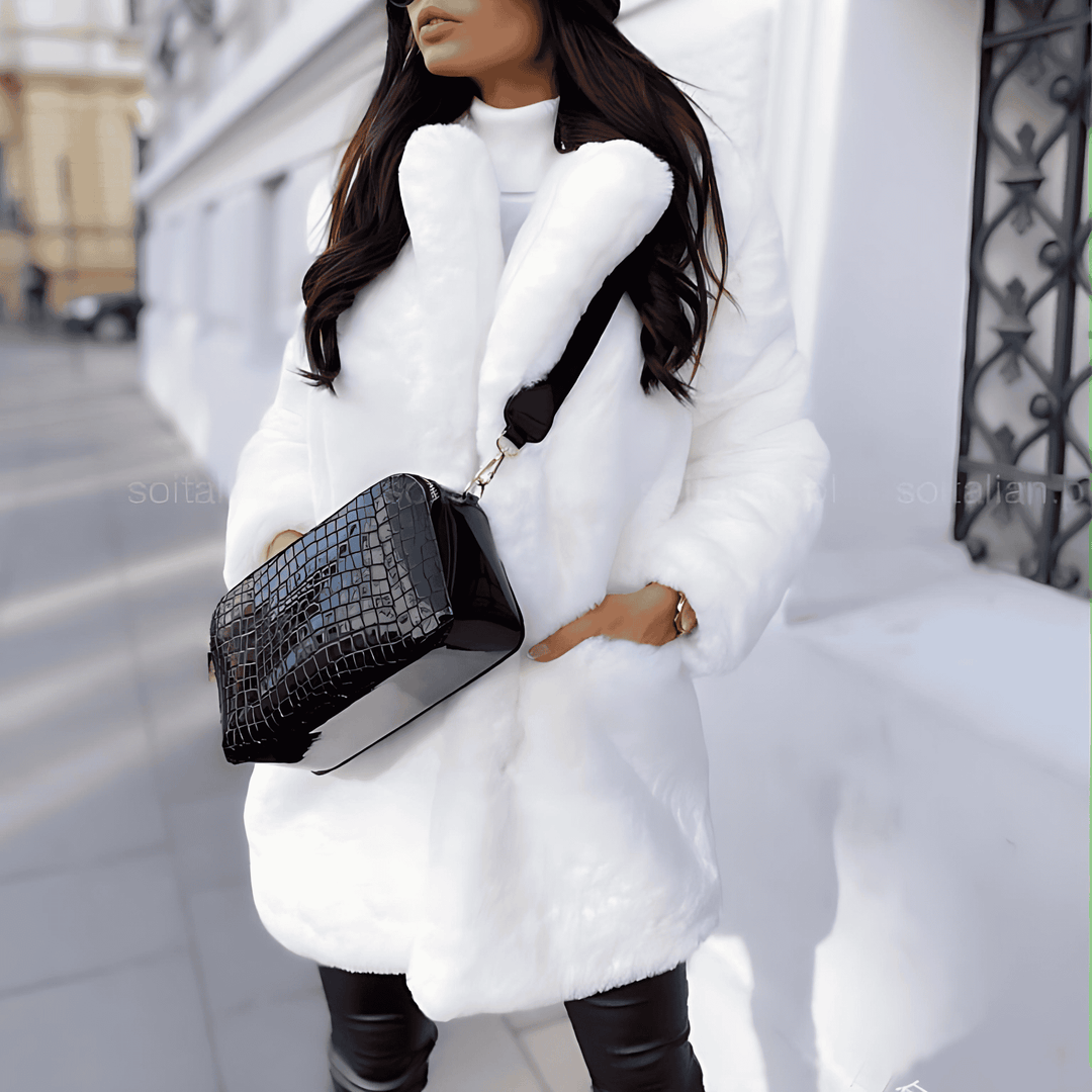 Women's Oversized Coat with Notched Collar and Double Button Row