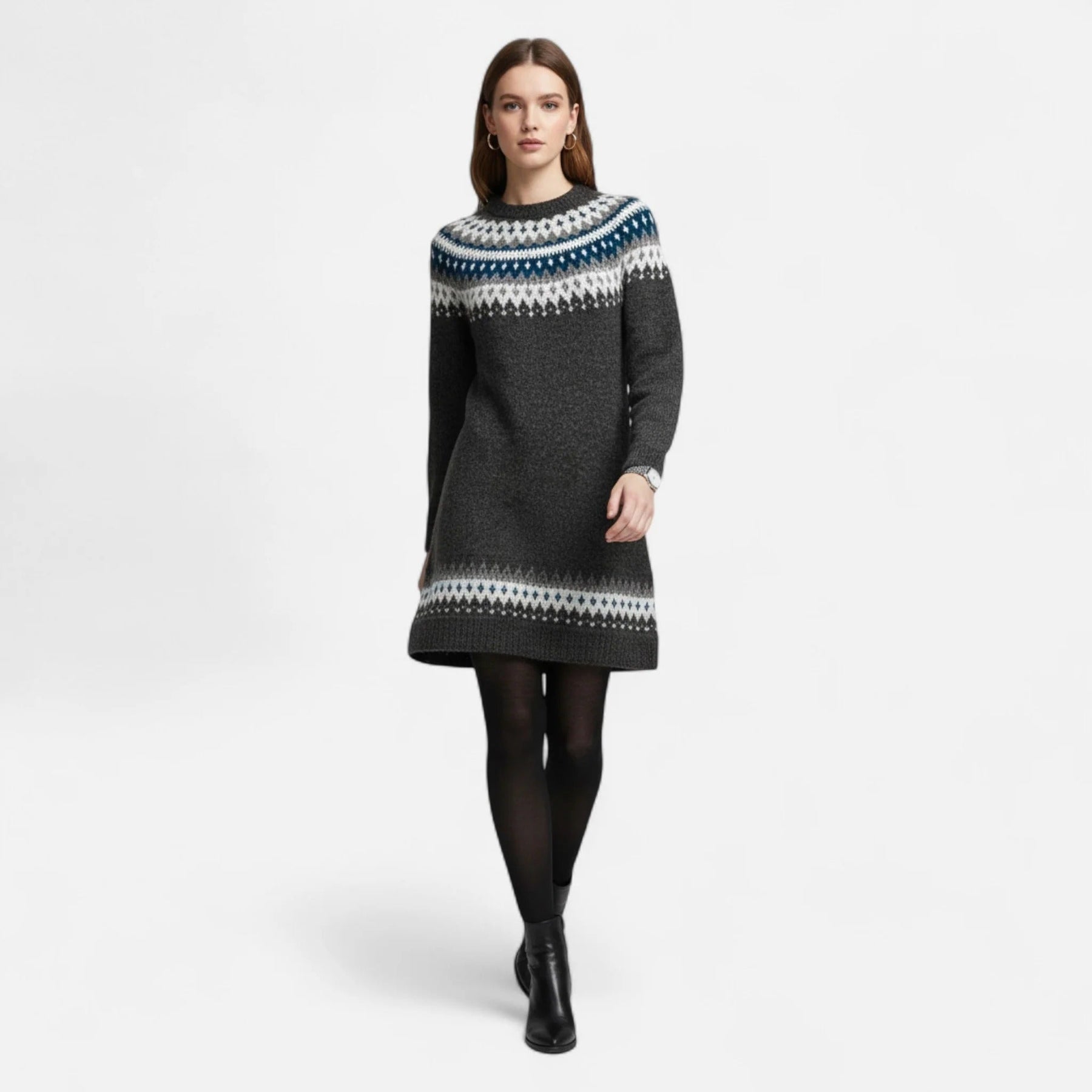 This women's knit sweater combines classic lines with modern sophistication. The fine, geometric rib design adds structure and style to your look, while the round neck and long fit create a feminine, flattering silhouette. Perfect for leisure, work, or relaxed weekends.
