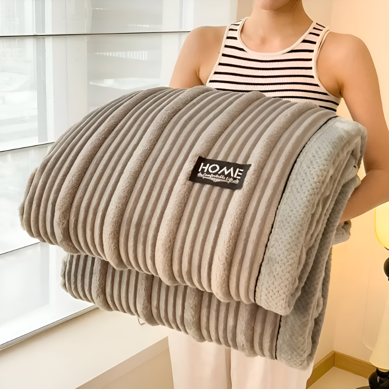 Striped fleece blanket – thick ribbed look for sofa and bed