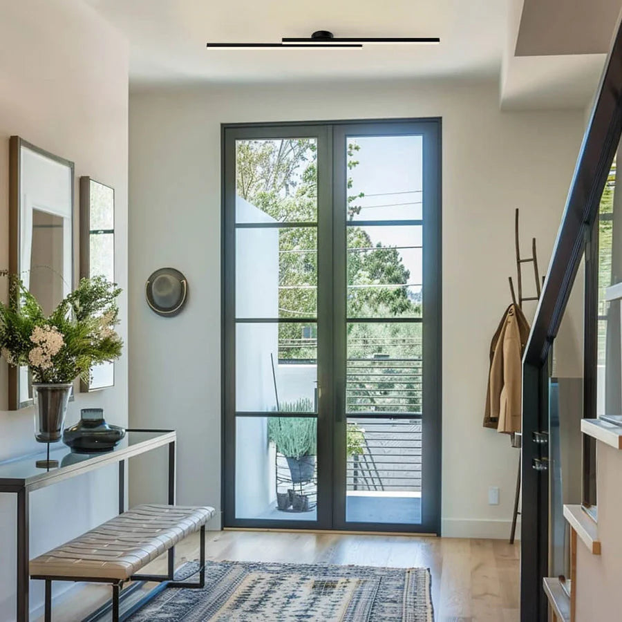 This elongated LED ceiling light made of aluminum combines minimalist style with functional brightness. Thanks to dimmable color temperatures and a remote control, it adapts flexibly to any living space – from the kitchen to the study. Ideal for anyone who wants to combine modern design with efficient lighting.