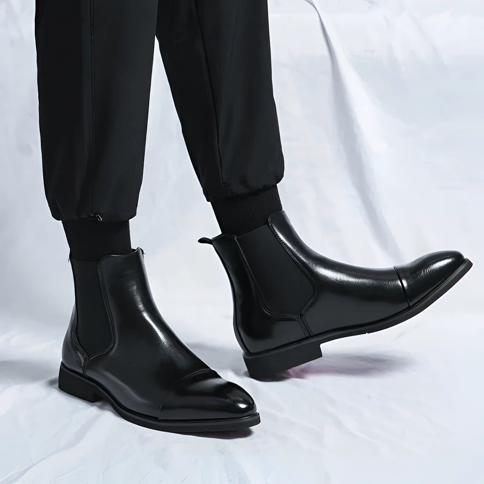 These men's Chelsea boots combine timeless elegance with a striking detail – the eye-catching red sole. The sleek, pointed design adds a stylish touch to any outfit, perfect for the transitional seasons of spring and autumn. Whether paired with jeans, dress pants, or a business look, these boots are versatile and make a fashionable statement.