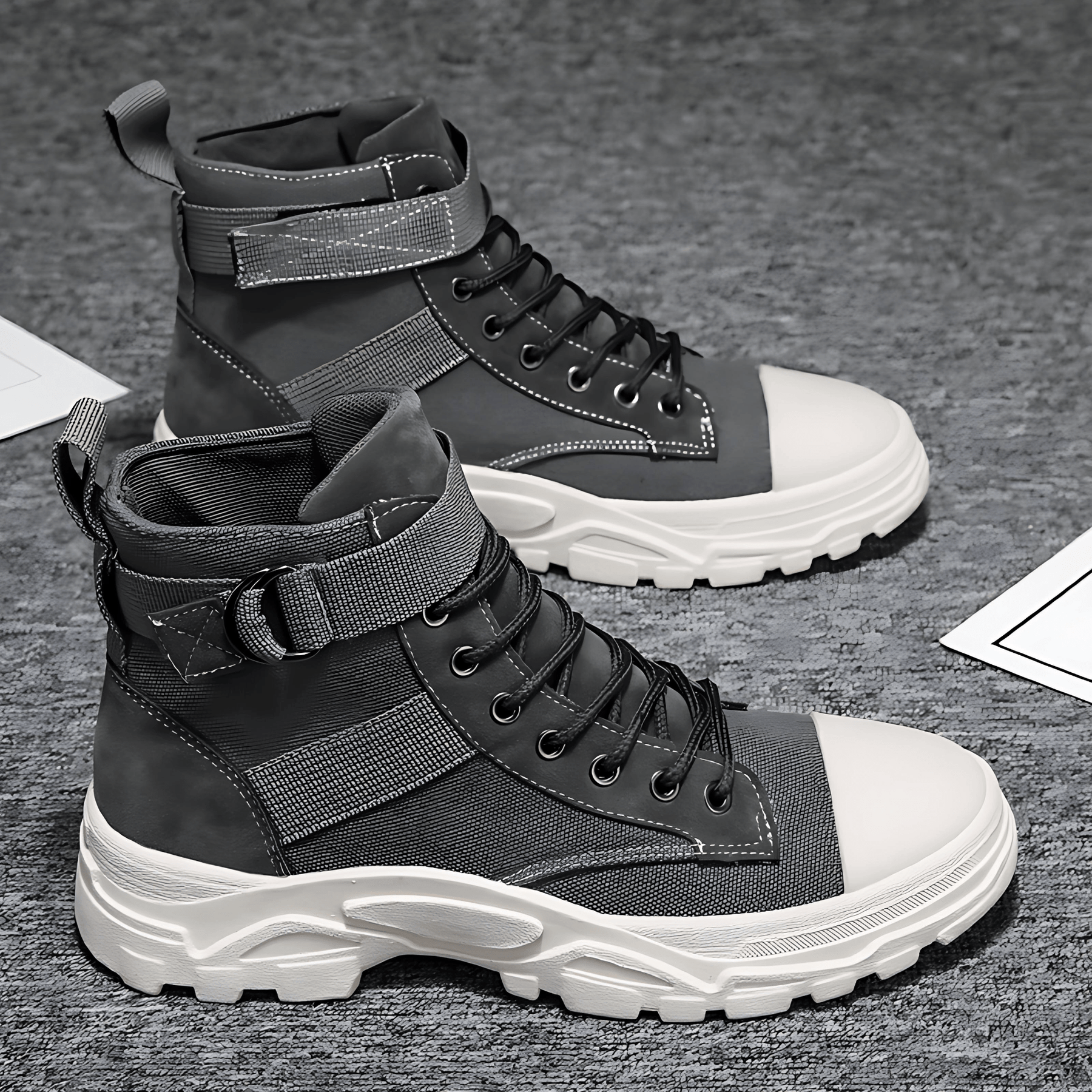 These men's ankle boots combine modern design with practical everyday wearability. The ankle-high cut offers support and stability, while the striking sole ensures a powerful stride. Perfect for city life, leisure activities, and weekend getaways.