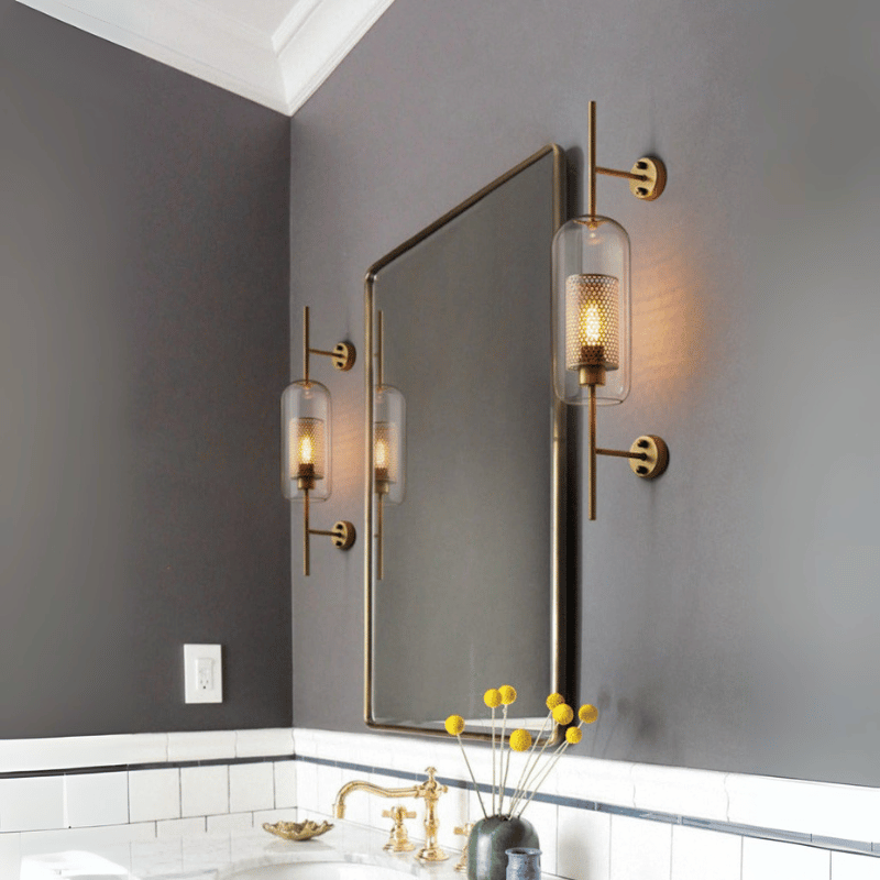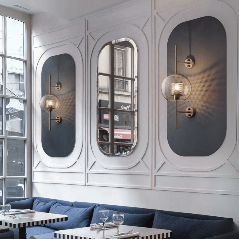 Wall lamp with honeycomb glass globe – Modern design with brass frame