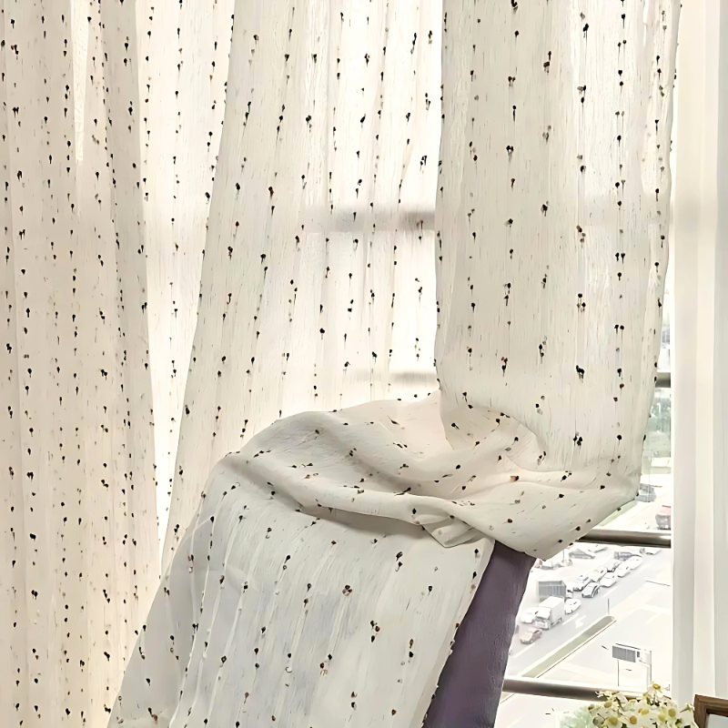 This tulle curtain, with its embroidered rainbow design, brings cheer to any room. The semi-transparent fabric gently filters the light, creating an airy and light atmosphere. Whether in the living room, bedroom, or on the balcony, it adds a decorative touch and creates a welcoming ambiance.