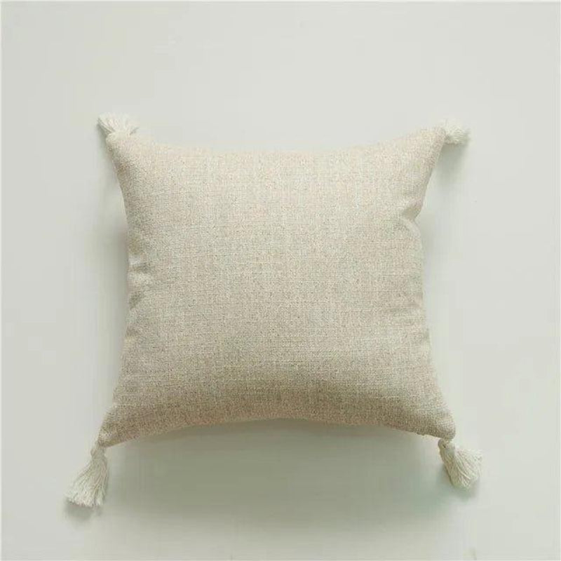 Das Baumwoll-Leinen-Kissen bringt schlichte Eleganz und behaglichen Komfort in dein Zuhause. Mit seiner weichen Oberfläche und dem unifarbenen Design passt es perfekt auf Sofa, Bett oder in gemütliche Leseecken. Erhältlich in Varianten mit dekorativen Bommeln oder schlicht ohne, fügt es sich harmonisch in moderne Wohnräume ein und lässt sich vielseitig kombinieren.