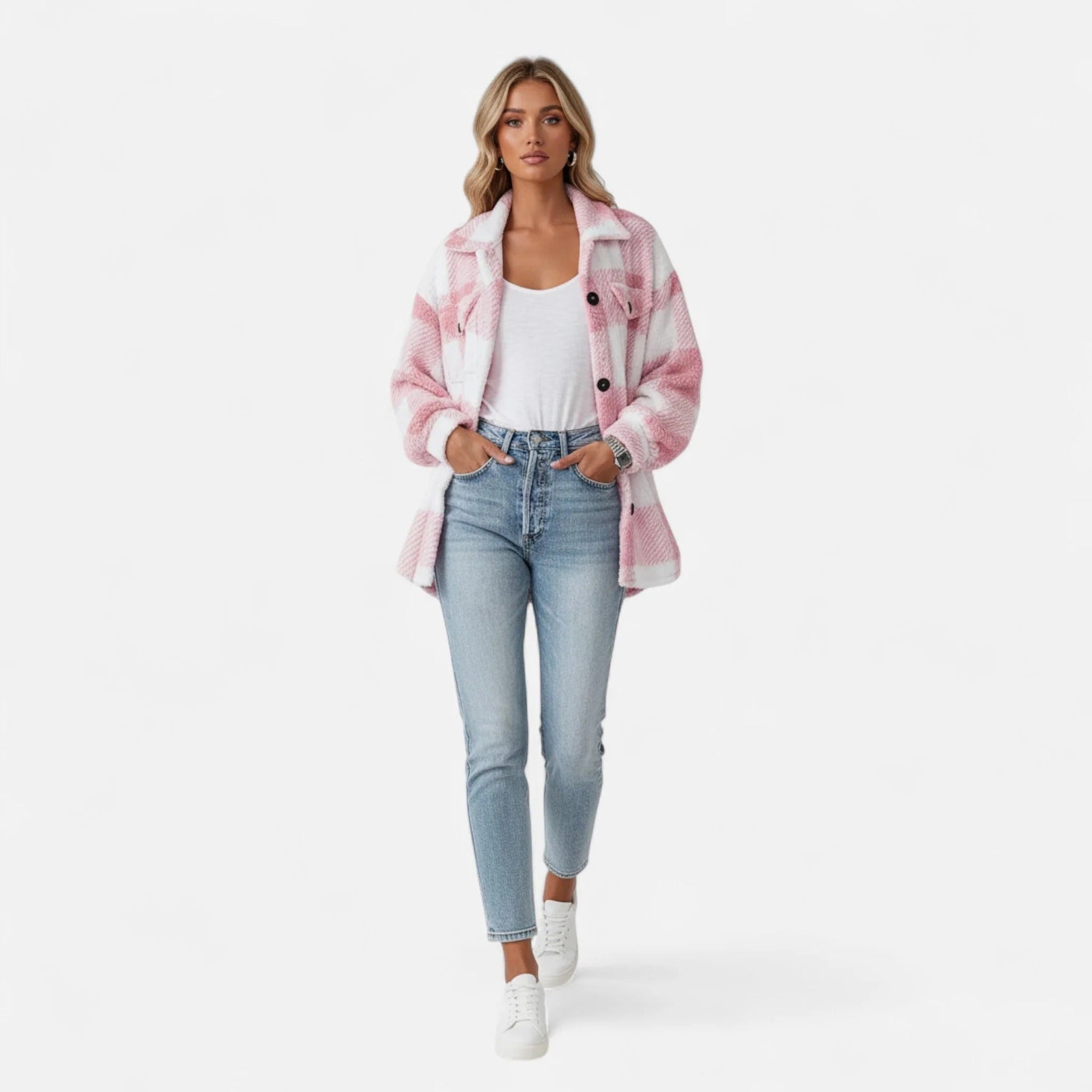 Damen Kariertes Fleecejacke Mit Weichem Plush